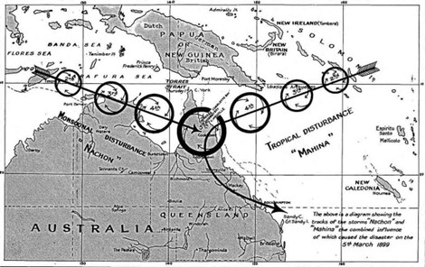 The first of the Cat 2+ cyclones to hit the Cairns to Cardwell sector after 1858 occurred before Mission Beach was settled by Europeans. It is well-known that the 1890 cyclone had devastating repercussions, destroying the Cuttens homestead in Bingil Bay and the residence of Willoughby and Alice Smith in Clump Point. In order to recover economically, the Cutten men had to seek work in the inland area for some time.